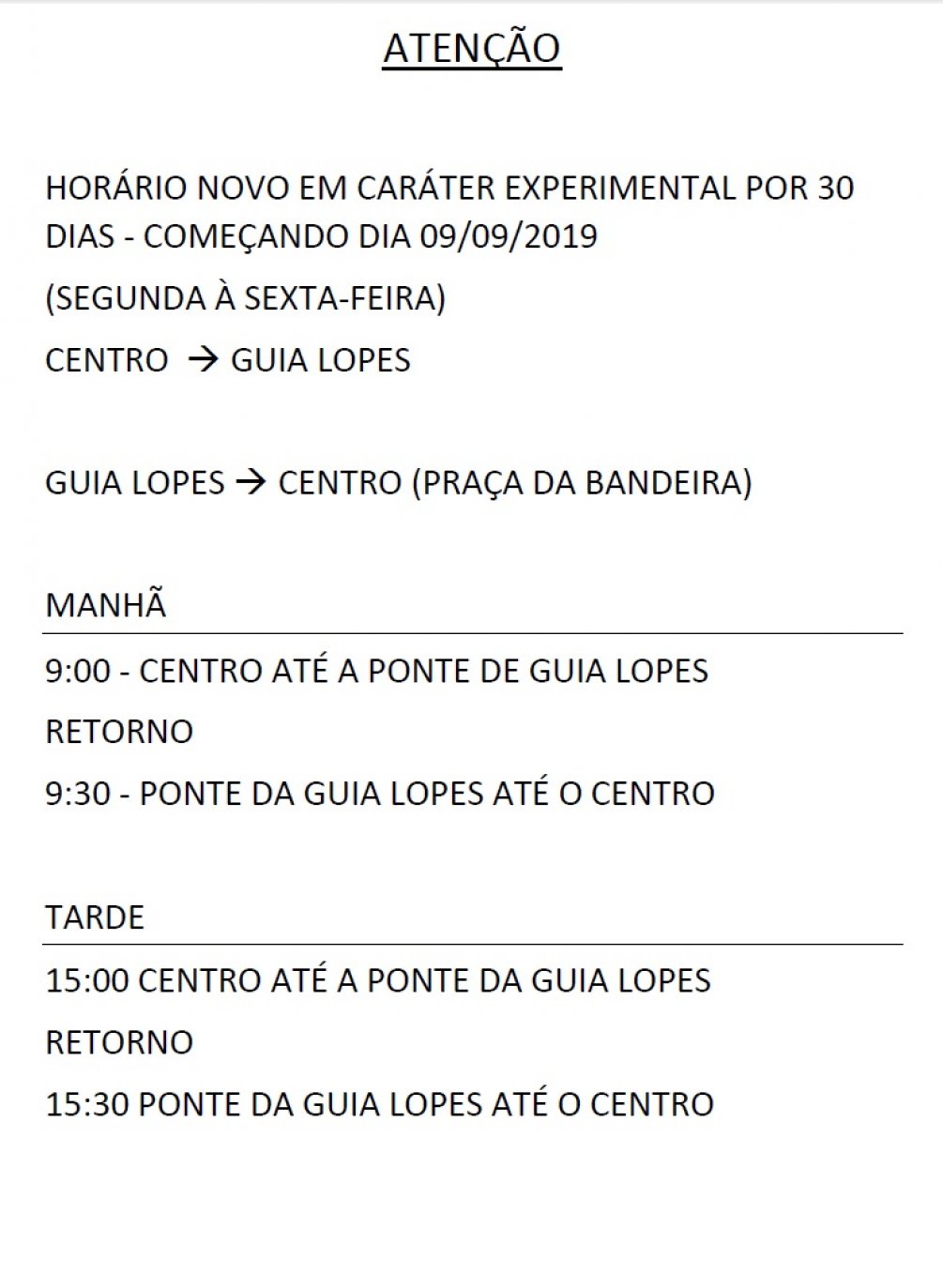 HORÁRIO EXPERIMENTAL CENTRO/GUIA LOPES